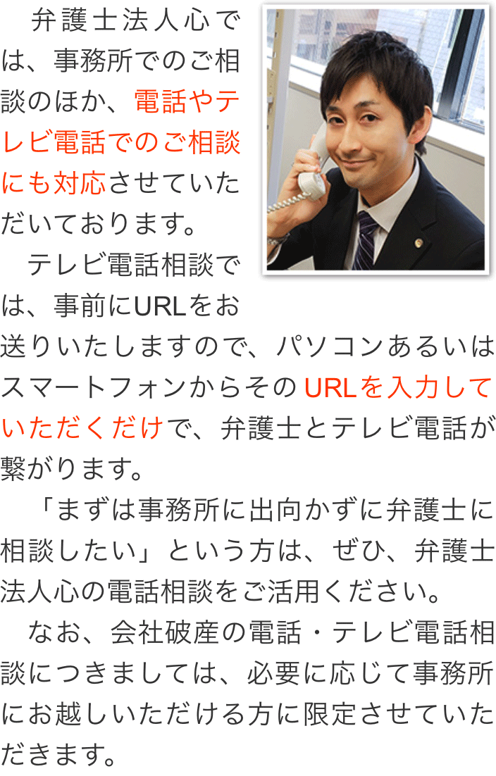 トップその他電話・テレビ電話相談について 階層構造▼ その他(目次) 電話・テレビ電話相談について その他(目次)その他トップ共通バナー元※削除不可新着情報(心グループニュース)電話・テレビ電話相談について代表メッセージ相談するタイミングを迷われている方へ金融機関との関係を壊したくない方へお客様相談室グループ概要費用詳細心グループのメディア出演実績マスコミ関係者の方へ関連リンクプライバシーポリシー 受付時間 平日 9時~21時、土日祝 9時~18時 夜間・土日祝の相談も対応します(要予約) 所在地 〒330-0846 埼玉県さいたま市大宮区大門町1-63栗橋ビル6F 0120-41-2403 お問合せ・アクセス・地図